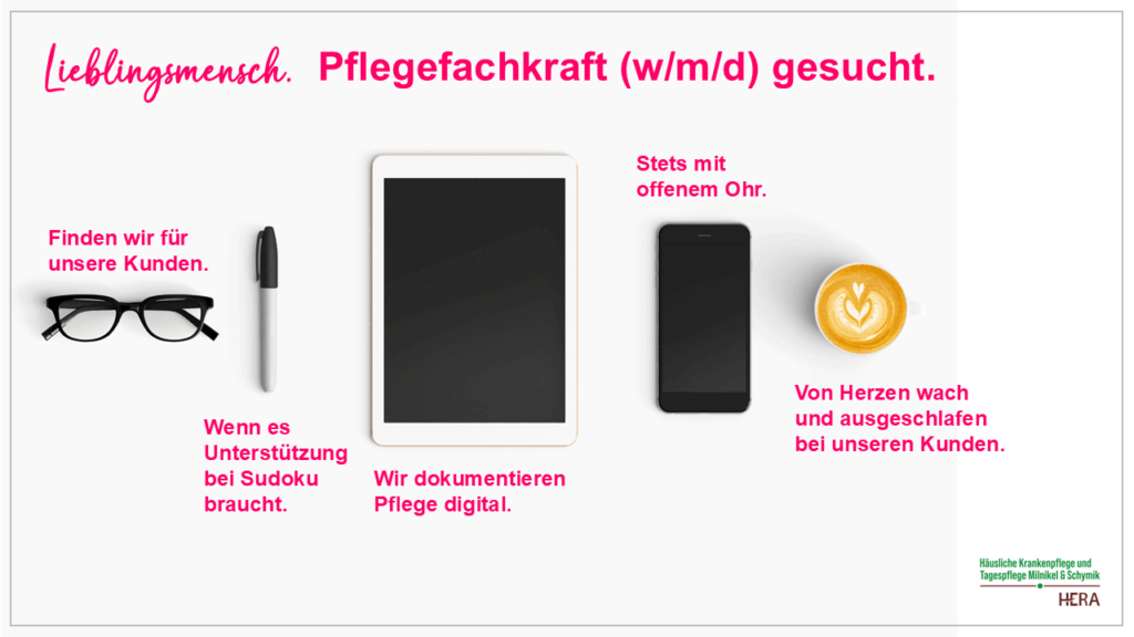 - vielfältige Chancen und Möglichkeiten innerhalb der in mehreren Bundesländern vertretenen Hera Residenzen Gruppe mit ambulanten Pflegediensten, Tagespflegen, Betreutem Wohnen sowie Intensivpflege und 24-Stunden-Assistenz, der wir angehören.